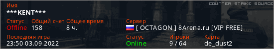 Играет на Counter Strike Source сервере. Страна: РоссияПервый раз замечен 06:16 05.06.2020