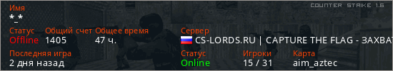 Играет на Counter Strike 1.6 сервере. Страна: РоссияПервый раз замечен 17:48 14.03.2021