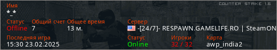 Играет на Counter Strike 1.6 сервере. Страна: СШАПервый раз замечен 09:09 06.02.2025