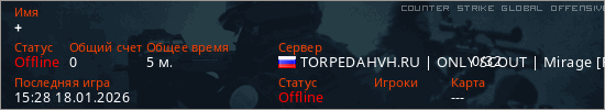 Играет на Counter Strike Global Offensive сервере. Страна: РоссияПервый раз замечен 15:17 18.01.2026