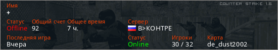 Последний раз был в сети Вчера Игрок с таким ником замечен на 50 серверах