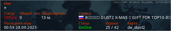 Играет на Counter Strike Global Offensive сервере. Страна: РоссияПервый раз замечен 19:34 24.06.2025