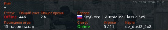 Играет на Counter Strike 1.6 сервере. Страна: РоссияПервый раз замечен 01:01 02.08.2024