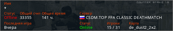 Последний раз был в сети 23 часа назад Игрок с таким ником замечен на 50 серверах