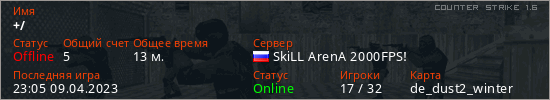 Играет на Counter Strike 1.6 сервере. Страна: РоссияПервый раз замечен 13:42 07.04.2023