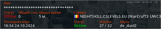Играет на Counter Strike 1.6 сервере. Страна: РумынияПервый раз замечен 18:30 24.10.2024