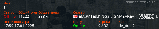 Играет на Counter Strike 1.6 сервере. Страна: ВеликобританияПервый раз замечен 19:38 13.01.2021