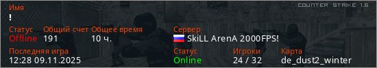 Последний раз был в сети 12:28 09.11.2025 Игрок с таким ником замечен на 49 серверах
