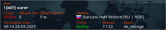 Играет на Counter Strike Global Offensive сервере. Страна: РоссияПервый раз замечен 08:53 28.09.2025
