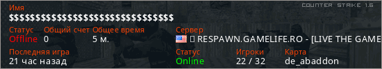 Последний раз был в сети 18 часов назад Игрок с таким ником замечен на 16 серверах