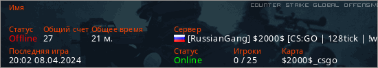 Играет на Counter Strike Global Offensive сервере. Страна: РоссияПервый раз замечен 14:04 05.04.2024