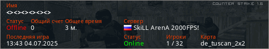 Играет на Counter Strike 1.6 сервере. Страна: РоссияПервый раз замечен 13:43 04.07.2025