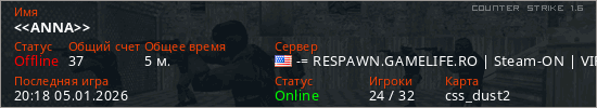 Играет на Counter Strike 1.6 сервере. Страна: СШАПервый раз замечен 15:19 04.01.2026