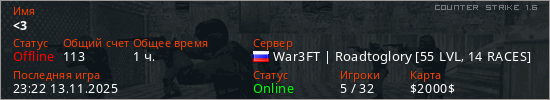Последний раз был в сети 23:22 13.11.2025 Игрок с таким ником замечен на 63 серверах
