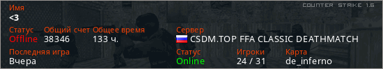 Последний раз был в сети Вчера Игрок с таким ником замечен на 63 серверах