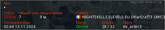 Играет на Counter Strike 1.6 сервере. Страна: РумынияПервый раз замечен 16:45 03.10.2024