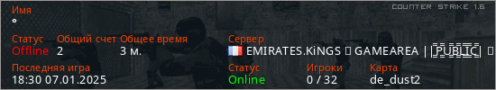 Играет на Counter Strike 1.6 сервере. Страна: ФранцияПервый раз замечен 18:30 07.01.2025