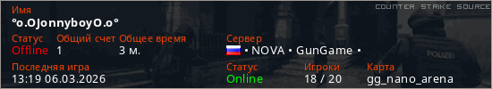 Играет на Counter Strike Source сервере. Страна: РоссияПервый раз замечен 13:19 06.03.2026