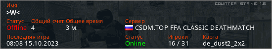 Играет на Counter Strike 1.6 сервере. Страна: РоссияПервый раз замечен 08:08 15.10.2023