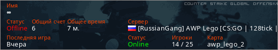 Играет на Counter Strike Global Offensive сервере. Страна: РоссияПервый раз замечен 01:47 20.03.2026