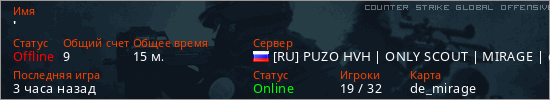 Играет на Counter Strike Global Offensive сервере. Страна: РоссияПервый раз замечен 05:14 16.09.2025