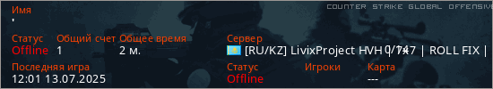 Играет на Counter Strike Global Offensive сервере. Страна: КазахстанПервый раз замечен 12:01 13.07.2025