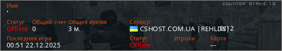 Играет на Counter Strike 1.6 сервере. Страна: УкраинаПервый раз замечен 00:51 22.12.2025