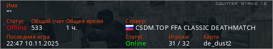 Последний раз был в сети 22:47 10.11.2025 Игрок с таким ником замечен на 9 серверах