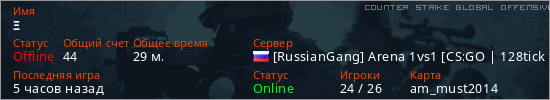 Играет на Counter Strike Global Offensive сервере. Страна: РоссияПервый раз замечен 22:57 03.03.2026
