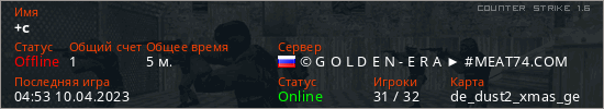 Играет на Counter Strike 1.6 сервере. Страна: РоссияПервый раз замечен 04:12 10.04.2023