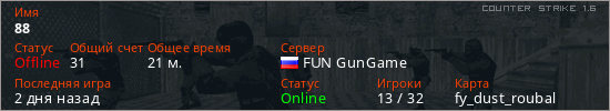 Последний раз был в сети 2 дня назад Игрок с таким ником замечен на 40 серверах