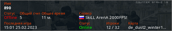 Играет на Counter Strike 1.6 сервере. Страна: РоссияПервый раз замечен 10:50 25.02.2023