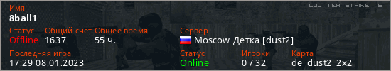 Играет на Counter Strike 1.6 сервере. Страна: РоссияПервый раз замечен 20:09 24.11.2022