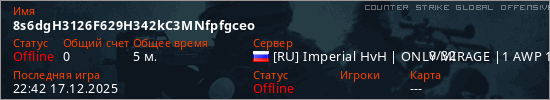 Играет на Counter Strike Global Offensive сервере. Страна: РоссияПервый раз замечен 22:15 17.12.2025