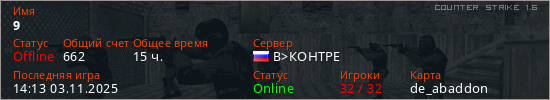 Последний раз был в сети 14:13 03.11.2025 Игрок с таким ником замечен на 41 сервере