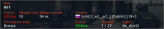 Последний раз был в сети Вчера Игрок с таким ником замечен на 53 серверах