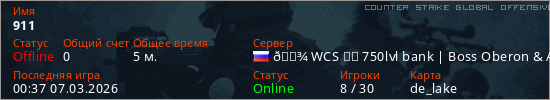 Играет на Counter Strike Global Offensive сервере. Страна: РоссияПервый раз замечен 00:25 07.03.2026