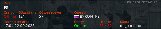 Играет на Counter Strike 1.6 сервере. Страна: РоссияПервый раз замечен 12:53 09.11.2020
