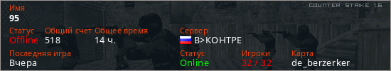 Последний раз был в сети Вчера Игрок с таким ником замечен на 36 серверах