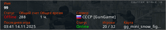 Играет на Counter Strike 1.6 сервере. Страна: РоссияПервый раз замечен 12:05 06.08.2023