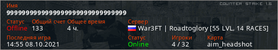 Играет на Counter Strike 1.6 сервере. Страна: РоссияПервый раз замечен 10:12 06.10.2021