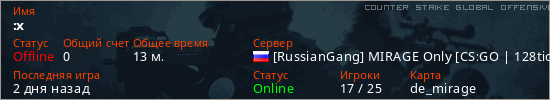 Играет на Counter Strike Global Offensive сервере. Страна: РоссияПервый раз замечен 18:09 22.03.2026