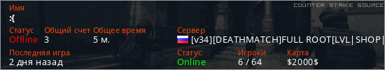 Последний раз был в сети 2 дня назад Игрок с таким ником замечен на 7 серверах