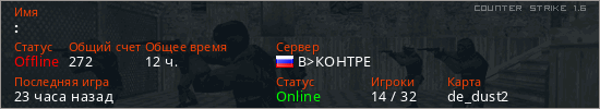 Играет на Counter Strike 1.6 сервере. Страна: РоссияПервый раз замечен 11:45 16.11.2019