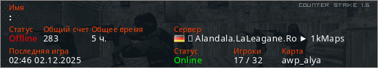 Играет на Counter Strike 1.6 сервере. Страна: ГерманияПервый раз замечен 07:33 07.04.2024