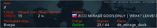 Играет на Counter Strike Global Offensive сервере. Страна: РоссияПервый раз замечен 19:47 04.02.2024