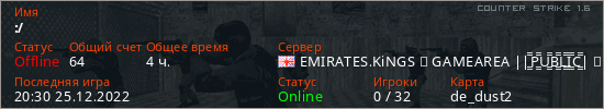 Последний раз был в сети 20:30 25.12.2022 Игрок с таким ником замечен на 34 серверах