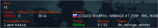Играет на Counter Strike Global Offensive сервере. Страна: РоссияПервый раз замечен 23:03 03.10.2025