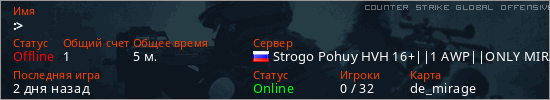 Играет на Counter Strike Global Offensive сервере. Страна: РоссияПервый раз замечен 23:28 28.11.2025
