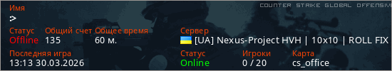 Играет на Counter Strike Global Offensive сервере. Страна: УкраинаПервый раз замечен 16:26 15.03.2026